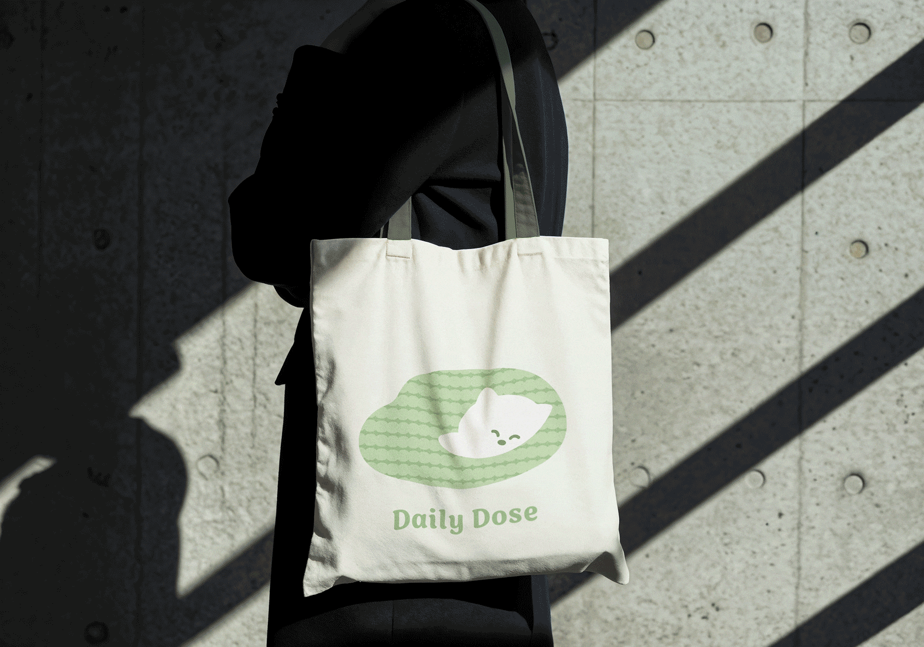 The Daily Dose identity captures the beauty of the ordinary through a versatile, cohesive system. At its core, the logo is a cat nestled in a crochet blanket, serving as a metaphor for mindfulness and tactile comfort. By distilling the meditative rhythm of crochet into a serene icon, the design grounds the brand in authentic, everyday joy.