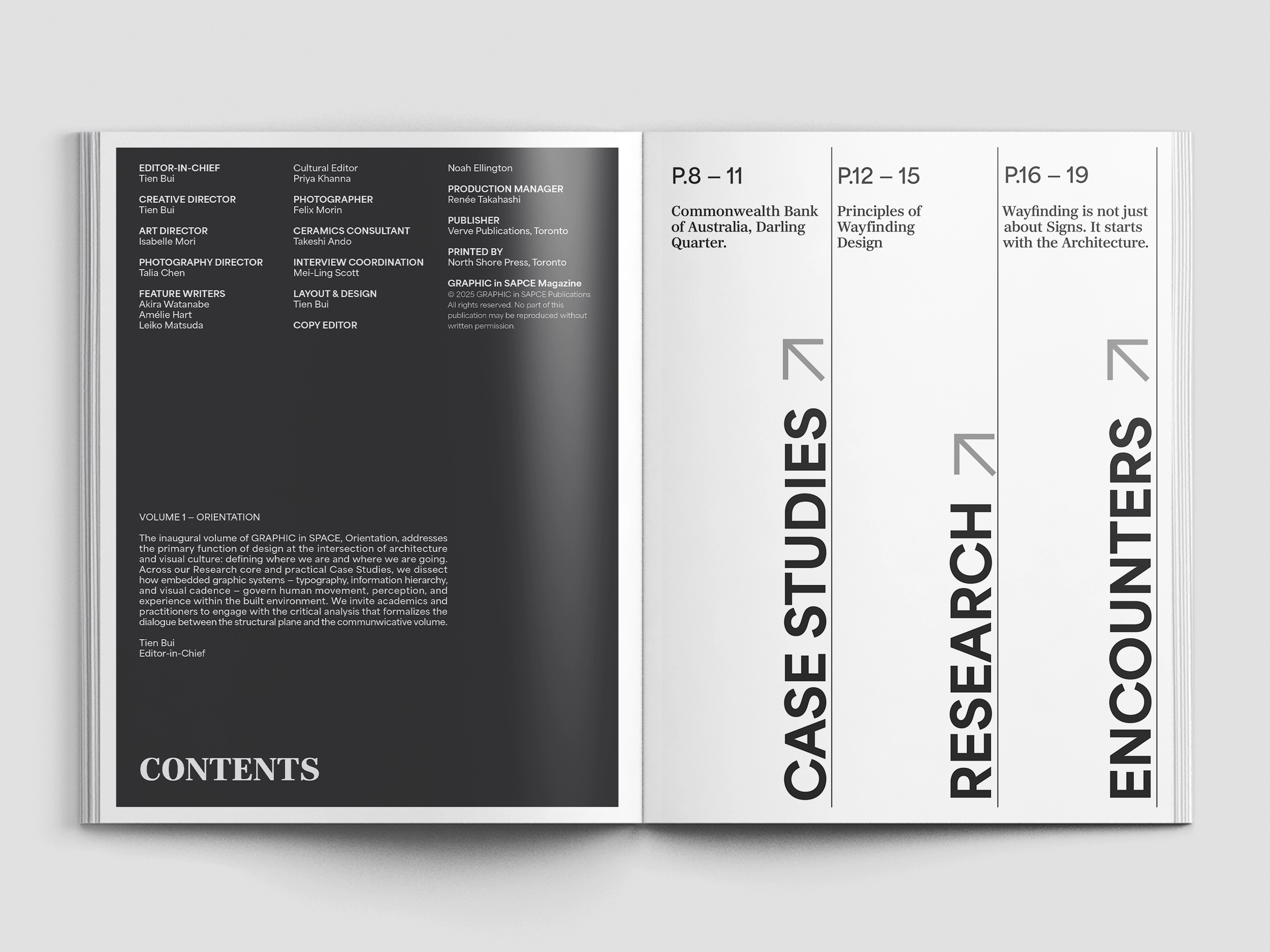 This project investigates how graphic design extends beyond flat surfaces to exist within space, guiding movement, influencing perception, and enhancing narrative within built environments. By combining analytical research with real-world case studies and observational encounters, the magazine aims to bridge the gap between graphic and spatial design, highlighting their interconnected relationship in contemporary practice.